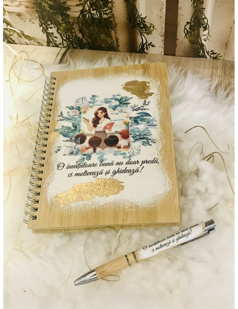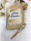 Dimensiuni: Format A5 (21x16 cm), spiralata, cu coperti din bambus, 80 file dictando, natur