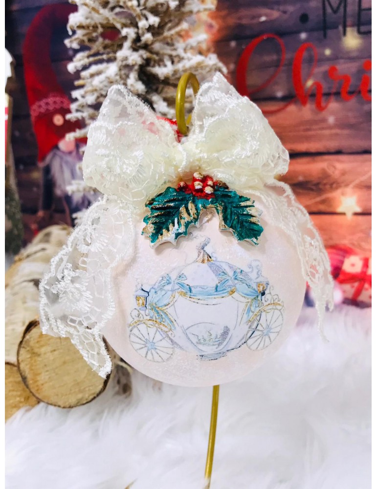 Glob de Craciun din sticla 10 cm "Caleasca fermecata"