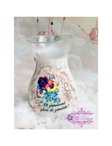 Ofera cadouri personalizate pentru cadrele didactice! Descopera daruri unice pentru profesoare, educatoare, diriginte si invatatoare, create special pentru a reflecta respectul si aprecierea pentru educatie. Flori, fete si baieti...in alegerea unui buchet de flori, alegerea iti apartine. Dar ce ar fi daca atunci cand daruiesti un buchet de flori ai oferi si o vaza personalizata? Surpiza va fi dubla in acesta caz :) Este infrumusetata prin tehnica decoupage-ului,cu hartie de matase de cea mai mica densitate (12g), vopsita si decorata manual,antichizata cu lac de crapare si patine, accesorizata cu elemente 3D, protejata cu lac pentru o rezistenta foarte buna in timp. Produsele folosite pentru decorare sunt produse profesionale,pe baza de apa, baby-friendly, certificate ecologic, non-Toxice, marca Maxi Decor (Voc Low & Apeo Free). Pe baza specificatiilor lasate de tine, ne rezervam dreptul sa ajustam grafica astfel incat tu sa primesti un produs unic. Vaza este din sticla si se recomanda manipularea cu grija pentru a nu se sparge sau deteriora. Daca doresti o tema care nu este disponibila, ne-o poti comunica - lasa-ti ideile in mainile noastre si nu vei regreta. Asigura-te ca ai completat toate detaliile necesare pentru a putea plasa comanda. Verificati ca mesajele sa fie scrise corect si cu diacritice, daca asa va doriti sa apara. Vom folosi intocmai textele trimise de dvs. Culorile pot diferi fata de varianta reala, in functie de setarile monitorului / device-ului dvs., luminozitate, contrast, culoare. Forma vazei poate diferi in functie de stocul disponibil la furnizor.