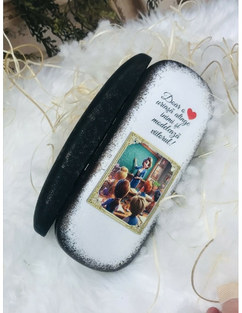 Ofera cadouri personalizate pentru cadrele didactice! Descopera daruri unice pentru profesoare, educatoare, diriginte si invatatoare, create special pentru a reflecta respectul si aprecierea pentru educatie. Un toc de ochelari este intotdeauna folositor, atat pentru ochelarii de vedere cat si pentru cei de soare. Acesta poate sa fie un cadou util si unic pentru cei dragi, de aceea noi iti oferim posibilitatea de a-ti personaliza cadourile, inclusiv tocul de ochelari Este infrumusetat prin tehnica decoupage-ului,cu hartie de matase de cea mai mica densitate (12g), vopsit si decorat manual, protejat cu lac pentru o rezistenta foarte buna in timp. Produsele folosite pentru decorare sunt produse profesionale,pe baza de apa, baby-friendly, certificate ecologic, non-Toxice, marca Maxi Decor (Voc Low & Apeo Free). Pe baza specificatiilor lasate de tine, ne rezervam dreptul sa ajustam grafica astfel incat tu sa primesti un produs unic. Daca doresti o tema care nu este disponibila, ne-o poti comunica - lasa-ti ideile in mainile noastre si nu vei regreta. Asigura-te ca ai completat toate detaliile necesare pentru a putea plasa comanda. Verificati ca mesajele sa fie scrise corect si cu diacritice, daca asa va doriti sa apara. Vom folosi intocmai textele trimise de dvs. Culorile pot diferi fata de varianta reala, in functie de setarile monitorului / device-ului dvs., luminozitate, contrast, culoare. Forma tocului poate diferi in functie de stocul disponibil la furnizor.
