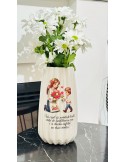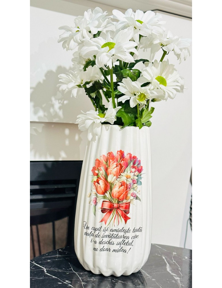 Ofera cadouri personalizate pentru cadrele didactice! Descopera daruri unice pentru profesoare, educatoare, diriginte si invatatoare, create special pentru a reflecta respectul si aprecierea pentru educatie. Flori, fete si baieti...in alegerea unui buchet de flori, alegerea iti apartine. Dar ce ar fi daca atunci cand daruiesti un buchet de flori ai oferi si o vaza personalizata? Surpiza va fi dubla in acesta caz :) Este infrumusetata prin tehnica decoupage-ului,cu hartie de matase de cea mai mica densitate (12g), vopsita si decorata manual, protejata cu lac pentru o rezistenta foarte buna in timp. Produsele folosite pentru decorare sunt produse profesionale,pe baza de apa, baby-friendly, certificate ecologic, non-Toxice, marca Maxi Decor (Voc Low & Apeo Free). Pe baza specificatiilor lasate de tine, ne rezervam dreptul sa ajustam grafica astfel incat tu sa primesti un produs unic. Vaza este din sticla si se recomanda manipularea cu grija pentru a nu se sparge sau deteriora. Daca doresti o tema care nu este disponibila, ne-o poti comunica - lasa-ti ideile in mainile noastre si nu vei regreta. Asigura-te ca ai completat toate detaliile necesare pentru a putea plasa comanda. Verificati ca mesajele sa fie scrise corect si cu diacritice, daca asa va doriti sa apara. Vom folosi intocmai textele trimise de dvs. Culorile pot diferi fata de varianta reala, in functie de setarile monitorului / device-ului dvs., luminozitate, contrast, culoare.
