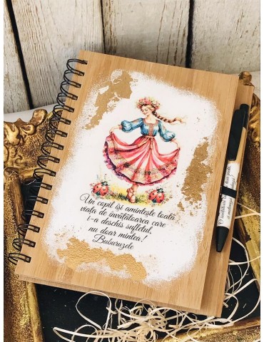 Dimensiuni: Format A5 (21x16 cm), spiralata, cu coperti din bambus, 80 file dictando, natur