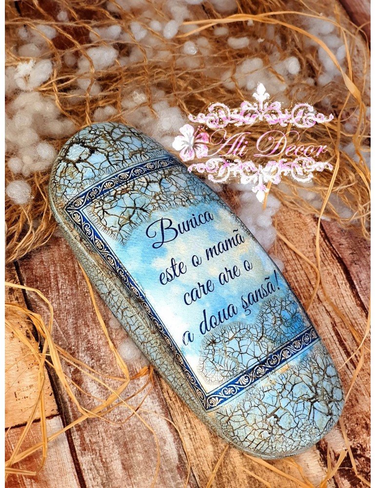 Răsfață-ți mama cu cadouri personalizate handmade, create cu grijă și iubire pentru a celebra momentele speciale.Fiecare obiect este atent gândit pentru a transmite emoție și recunoștință. Surprinde-ti mama cu daruri de suflet, care să-i aducă bucurie și să-i arate cât de mult o apreciezi. Un toc de ochelari este intotdeauna folositor, atat pentru ochelarii de vedere cat si pentru cei de soare. Acesta poate sa fie un cadou util si unic pentru cei dragi, de aceea noi iti oferim posibilitatea de a-ti personaliza cadourile, inclusiv tocul de ochelari Este infrumusetat prin tehnica decoupage-ului,cu hartie de matase de cea mai mica densitate (12g), vopsit si decorat manual, antichizat cu lac de crapare si patine, protejat cu lac pentru o rezistenta foarte buna in timp. Produsele folosite pentru decorare sunt produse profesionale,pe baza de apa, baby-friendly, certificate ecologic, non-Toxice, marca Maxi Decor (Voc Low & Apeo Free). Pe baza specificatiilor lasate de tine, ne rezervam dreptul sa ajustam grafica astfel incat tu sa primesti un produs unic. Daca doresti o tema care nu este disponibila, ne-o poti comunica - lasa-ti ideile in mainile noastre si nu vei regreta. Asigura-te ca ai completat toate detaliile necesare pentru a putea plasa comanda. Verificati ca mesajele sa fie scrise corect si cu diacritice, daca asa va doriti sa apara. Vom folosi intocmai textele trimise de dvs. Culorile pot diferi fata de varianta reala, in functie de setarile monitorului / device-ului dvs., luminozitate, contrast, culoare. Forma tocului poate diferi in functie de stocul disponibil la furnizor.