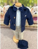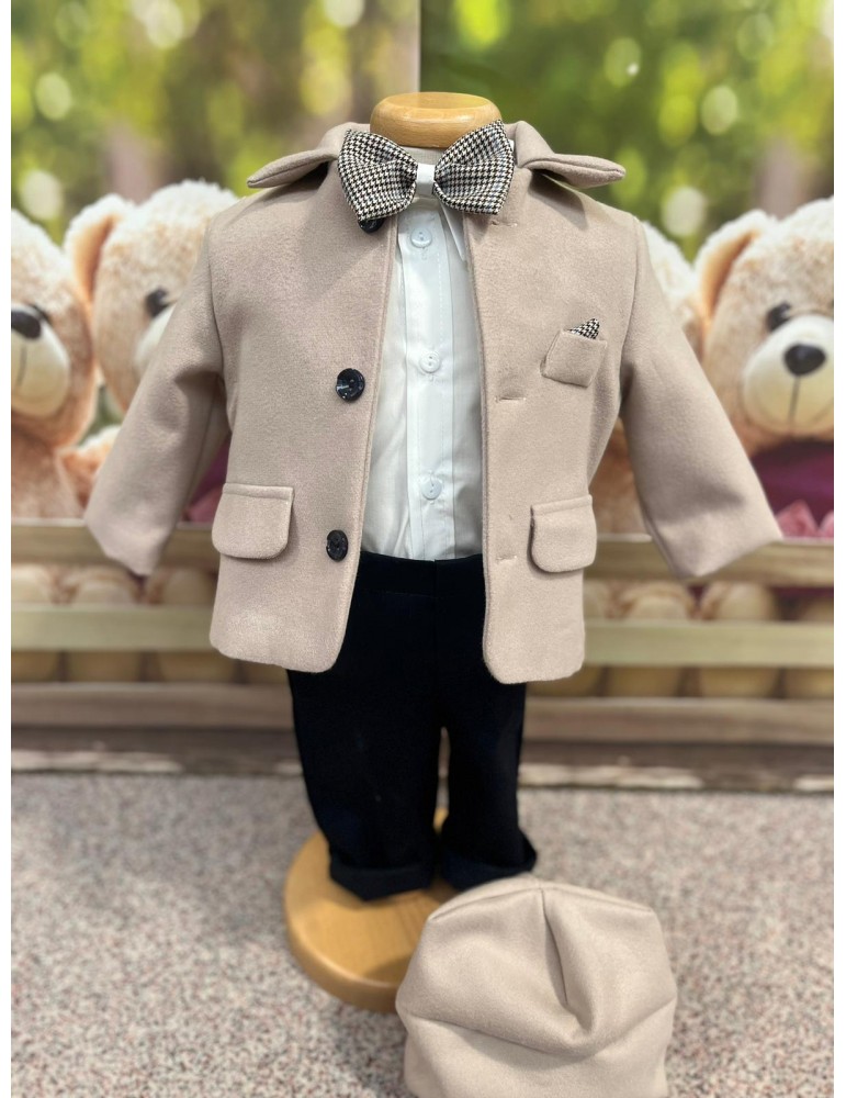 Costum botez baietel "Classic" bej mix Cod 31