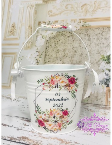 În tradiția românească a nunții, „udatul” este unul dintre cele mai frumoase obiceiuri, plin de simboluri și emoții. Mireasa, însoțită de alai, merge spre fântână pentru a lua apă, iar găleata decorată și personalizată devine elementul central al ritualului. Cu busuioc, fir tricolor și apă proaspătă, gestul stropirii aduce urări de belșug, sănătate și viață îmbelșugată pentru tinerii căsătoriți. La AliDecor, fiecare găleată a miresei personalizată este decorată manual cu tehnica decoupage-ului, vopsele pe bază de apă și lac protector non-toxic, pentru rezistență și frumusețe în timp. Poate fi personalizată cu numele mirilor, data nunții sau simboluri tradiționale care dau unicitate evenimentului vostru.