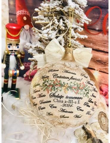 Glob premium sticla 12 cm cu foita aurie si numele copiilor "Globul invatatoarei" Cod 92