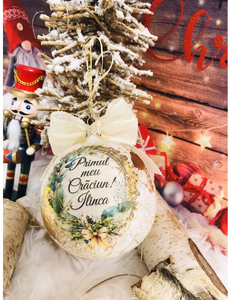 Glob premium sticla 10 cm cu foita aurie "Primul meu craciun" Cod 137
