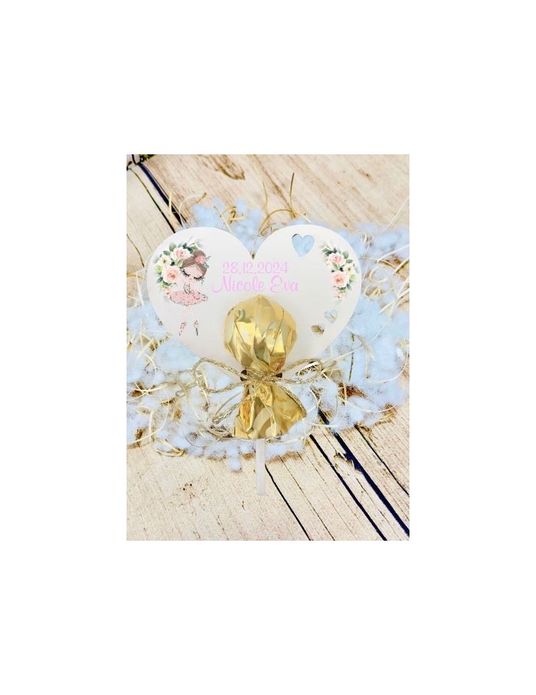Amintiri de neuitat dintr-o zi magică! Mărturia de botez – o inimioară din lemn personalizată cu imaginea și mesajul dorit, cu magnet pe spate, devine o mică bijuterie decorativă plină de emoție. Alături de o acadea delicioasă, acest dar dulce și simbolic va aduce zâmbete și va păstra vie amintirea acestui moment special!
