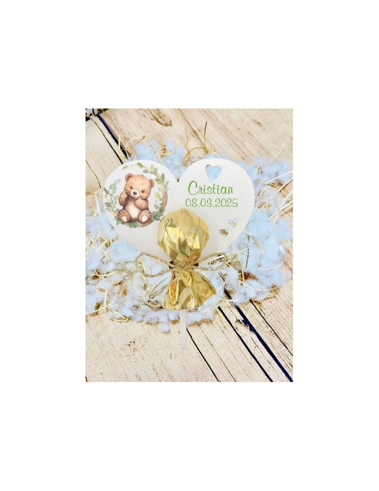 Amintiri de neuitat dintr-o zi magică! Mărturia de botez – o inimioară din lemn personalizată cu imaginea și mesajul dorit, cu magnet pe spate, devine o mică bijuterie decorativă plină de emoție. Alături de o acadea delicioasă, acest dar dulce și simbolic va aduce zâmbete și va păstra vie amintirea acestui moment special! Sunt realizate prin tehnica decoupage-ului,cu hartie de matase de cea mai mica densitate (12g), vopsite si decorate manual, protejate cu lac pentru o rezistenta foarte buna in timp. Produsele folosite pentru decorare sunt produse profesionale,pe baza de apa, baby-friendly, certificate ecologic, non-Toxice, marca Maxi Decor (Voc Low & Apeo Free). Pe verso au magnet si vin ambalate individual, in cutie, gata de daruit - astfel oferi invitatilor un cadou dulce datorita acadelei, dar si o amintitre pe viata. Pe baza specificatiilor lasate de tine, ne rezervam dreptul sa ajustam grafica astfel incat tu sa primesti un produs unic. Daca doresti o tema care nu este disponibila, ne-o poti comunica - lasa-ti ideile in mainile noastre si nu vei regreta. Asigura-te ca ai completat toate detaliile necesare pentru a putea plasa comanda. Verificati ca mesajele sa fie scrise corect si cu diacritice, daca asa va doriti sa apara. Vom folosi intocmai textele trimise de dvs. Culorile pot diferi fata de varianta reala, in functie de setarile monitorului / device-ului dvs., luminozitate, contrast, culoare. Forma accesoriilor poate diferi in functie de stocul disponibil la furnizor. Pretul este per bucata.
