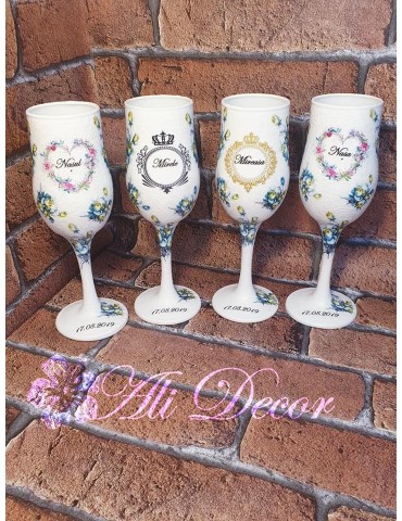 Cu numele voastre, data cea mare sau simboluri care vă definesc, aceste pahare sunt vopsite și decorate manual cu grijă și pasiune, folosind tehnica decoupage-ului și materiale profesionale pe bază de apă. Fiecare pahar este sigilat cu lac protector – non-toxic și sigur, pentru ca amintirile voastre să dăinuie peste ani. Fiecare model este o operă de artă unică, realizată cu suflet.