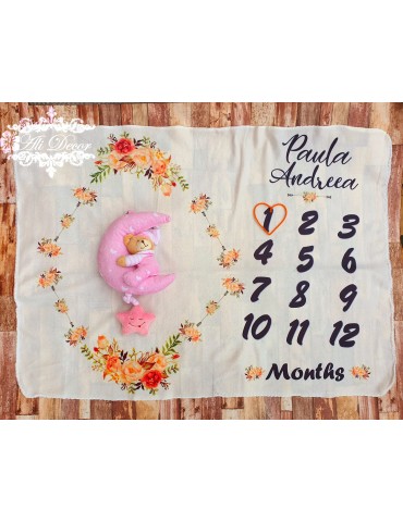 Pătura Milestone este cadoul perfect pentru un bebeluș nou născut. Cu ajutorul păturicii e mai ușor să imortalizezi creșterea și dezvoltarea copilului pentru a-ți putea aminti cu drag de această perioadă. Pentru a crea amintiri de neuitat te ajutăm cu multe accesorii personalizate pentru bebeluși, printre care și această pătură. Fiecare model este diferit și poate fi adaptat pe gusturile tuturor conform cerințelor.
