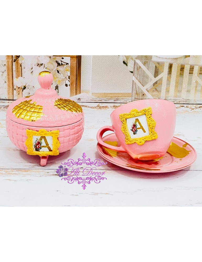 Set cafea personalizat cu foita de aur Cod SC 22