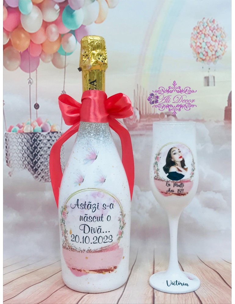 Fiecare cadou spune o poveste, iar seturile noastre personalizate sunt gândite să aducă bucurie și surpriză celor dragi! Lucrate manual, cu atenție la detalii, aceste seturi conțin produse unice, alese cu grijă pentru a se potrivi perfect oricărei ocazii. De la accesorii elegante la obiecte decorative, fiecare combinație este specială și personalizată exact așa cum îți dorești. Mereu ne place sa surprindem, nu-i asa? Imbina utilul cu placutul si alege acest set format dintr-o sticla de sampanie si 1 pahar, personalizate pentru acele momente de relaxare la un pahar de vorba...cadourile personalizate starnesc zambete de fiecare data! Setul este infrumusetat prin tehnica decoupage-ului, cu hartie de matase de cea mai mica densitate (12g) vopsite si decorate manual, protejate cu lac si rezistente la apa. Folosim vopsele acrilice si lacuri pe baza de apa, non-toxice (Voc Low si Apeo Free), marca Maxi Decor. Produsele sunt din sticla si se recomanda manipularea cu grija pentru a nu se sparge sau deteriora. Pe baza specificatiilor lasate de tine, ne rezervam dreptul sa ajustam grafica astfel incat tu sa primesti un produs unic. Daca doresti o tema care nu este disponibila, ne-o poti comunica - lasa-ti ideile in mainile noastre si nu vei regreta. Asigura-te ca ai completat toate detaliile necesare pentru a putea plasa comanda. Verificati ca mesajele sa fie scrise corect si cu diacritice, daca asa va doriti sa apara. Vom folosi intocmai textele trimise de dvs. Culorile pot diferi fata de varianta reala, in functie de setarile monitorului / device-ului dvs., luminozitate, contrast, culoare.