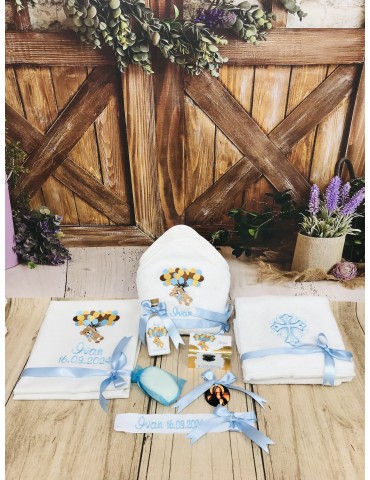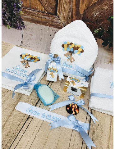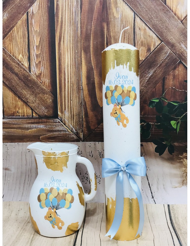 Set personalizat botez cu foita de aur “Teddy bear” Cod 01