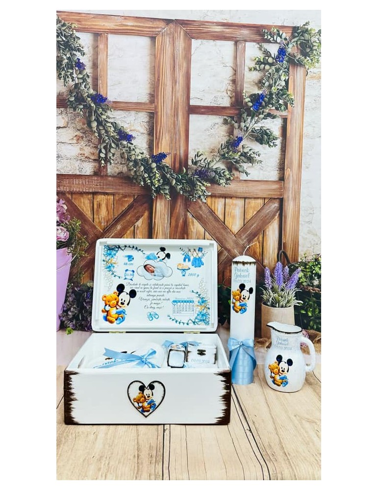 ✅ Opțional: Poți adăuga suplimentar o carafă de botez de 1L, personalizată în ton cu trusoul.