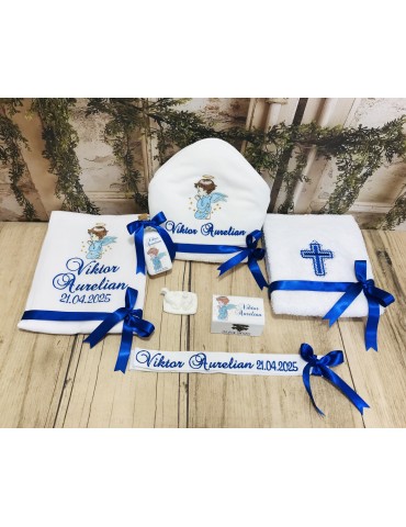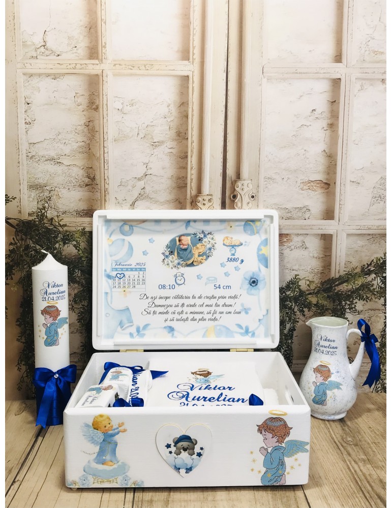 Seturi de botez complete, personalizate! ✨ Trusou brodat, lumânare asortată și, la alegere, carafă pentru botez, în funcție de tradițiile din zona ta. Ambalate elegant în cutie standard sau in cutie de lemn personalizata in tematica botezului, cu datele de la nastere, perfecte pentru o ceremonie de neuitat!
