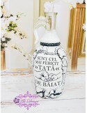 Tuturor ne place sa sarbatorim momentele importante din viata noastra. Indiferent ca vrei sa adresezi cuiva drag intrebarea: "Vreti sa fiti nasii nostri?" sau vrei sa iti arati aprecierea fata de cineva, o sticla personalizata fata-verso cu imaginea si textul dorite, va fi intotdeauna un cadou unic, o amintire pentru o viata. Sticla este sigilata, personalizata prin tehnica decoupage, accesorizata cu foita aurie pentru pictura, vopsita si lacuita cu produse non-toxice, profesionale, marca Maxi Decor. Pe baza specificatiilor lasate de tine, ne rezervam dreptul sa ajustam grafica astfel incat tu sa primesti un produs unic. Daca doresti o tema care nu este disponibila, ne-o poti comunica - lasa-ti ideile in mainile noastre si nu vei regreta (daca optati pentru o grafica noua, aceasta va va fi aratata in prealabil pentru a primi acordul dvs.). Asigura-te ca ai completat toate detaliile necesare pentru a putea plasa comanda. Verificati ca mesajele sa fie scrise corect si cu diacritice, daca asa va doriti sa apara. Vom folosi intocmai textele trimise de dvs. Culorile pot diferi fata de varianta reala, in functie de setarile monitorului / device-ului dvs., luminozitate, contrast, culoare.