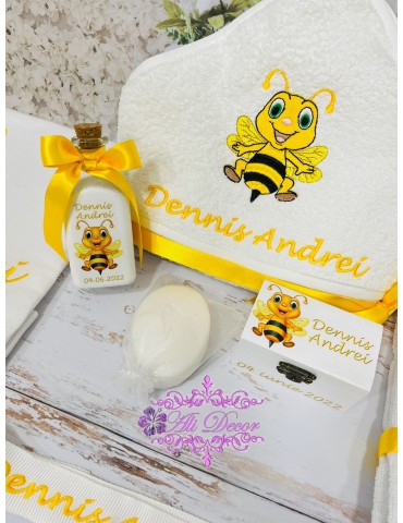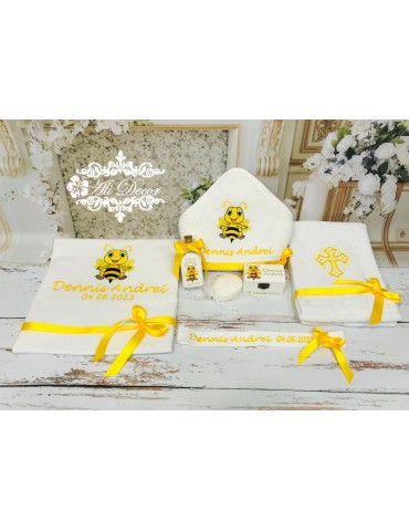 Setul de botez poate fi completat cu lumanare,canta,body,paturica,etc. Daca iti doresti sa adaugi acestui set si alt produs, dar personalizat in tematica setului si nu l-ai gasit cu aceeasi tematica, ne poti adauga la detalii: asortat cu si codul produsului :)