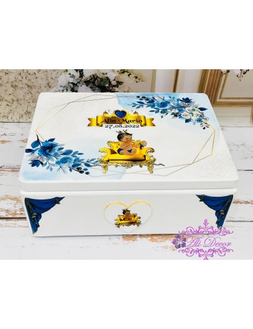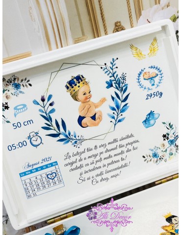 Trusoul de botez este esential pentru a transforma cel mai frumos moment din viata copilasului intr-un moment de neuitat, intr-o frumoasa poveste cu amintiri unice. Nu uita ca pozele sunt cele mai palpabile amintiri peste ani si ani. Toate detaliile sunt importante și tratate cu multă atenție. Daca esti in cautare de trusoul pentru botez, iti propunem un trusou cu prosoape de calitate premium, personalizat prin broderie in tematica dorita. Broderia este cea mai rezistenta metoda de personalizare, cusaturile au o viata indelungata in timp si nu se decoloreaza in urma spalarilor, deoarece folosim materiale profesionale speciale pentru broderie, Madeira. Cutia din lemn pentru trusou, cutiuta pentru prima suvita si sticluta pentru mir, sunt personalizate in ton cu tematica trusoului,prin tehnica decoupage-ului, vopsite manual si lacuite cu produse profesionale non-toxice, marca Maxi Decor. Cufarul personalizat pentru trusoul de botez - un cadou ideal ce isi dovedeste utilitatea in timp. Este un loc unde se strang laolalta amintiri, povesti, emotii - prima ecografie a copilasului din burtica mamei, prima jucarie, prima poza. Pastreaza-le in cufarul amintirilor si le vei revedea si retrai de fiecare data cand iti va fi dor - vor trezi emotie in sufletul tau. Setul de botez se personalizeaza in tematica dorita de tine. Daca doresti o tema care nu este disponibila, ne-o poti comunica (daca optati pentru o grafica noua, aceasta va va fi aratata in prealabil pentru a primi acordul dvs.) - lasa-ti ideile in mainile noastre si nu vei regreta. Asigura-te ca ai completat toate detaliile necesare pentru a putea plasa comanda. Verificati ca mesajele sa fie scrise corect si cu diacritice, daca asa va doriti sa apara. Vom folosi intocmai textele trimise de dvs. Culorile pot diferi fata de varianta reala, in functie de setarile monitorului / device-ului dvs., luminozitate, contrast, culoare. Accesoriile si forma cutiei pot sa difere usor, in functie de stocul disponibil la furnizor.