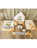 Trusoul de botez este esential pentru a transforma cel mai frumos moment din viata copilasului intr-un moment de neuitat, intr-o frumoasa poveste cu amintiri unice. Toate detaliile sunt importante și tratate cu multă atenție. Daca esti in cautare de trusoul pentru botez, iti propunem un trusou cu prosoape de calitate premium, personalizat prin broderie in tematica dorita. Broderia este cea mai rezistenta metoda de personalizare, cusaturile au o viata indelungata in timp si nu se decoloreaza in urma spalarilor, deoarece folosim materiale profesionale speciale pentru broderie, Madeira. Cutiuta pentru prima suvita si sticluta pentru mir, sunt personalizate in ton cu tematica trusoului,prin tehnica decoupage-ului, vopsite manual si lacuite cu produse profesionale non-toxice, marca Maxi Decor. Se poate realiza in orice tematica doresti. Daca doresti o tema care nu este disponibila, ne-o poti comunica- iti vom arata modelele disponibile de broderie pentru tema aleasa - lasa-ti ideile in mainile noastre si nu vei regreta. Asigura-te ca ai completat toate detaliile necesare pentru a putea plasa comanda. Verificati ca mesajele sa fie scrise corect si cu diacritice, daca asa va doriti sa apara. Vom folosi intocmai textele trimise de dvs .Accesoriile pot sa difere in functie de stocul disponibil la furnizor. Culorile pot diferi fata de varianta reala, in functie de setarile monitorului / device-ului dvs., luminozitate, contrast, culoare. Ambalarea in cutie cadou este din partea noastra.